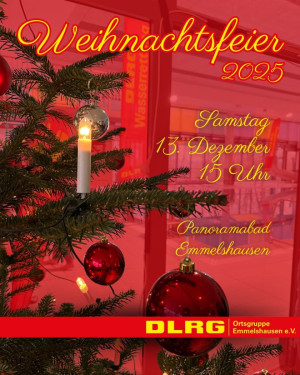 Am Samstag, den 13. Dezember, lädt unsere Ortsgruppe alle Vereinsmitglieder und deren Familien herzlich zur diesjährigen Weihnachtsfeier ins Panoramabad Emmelshausen ein.